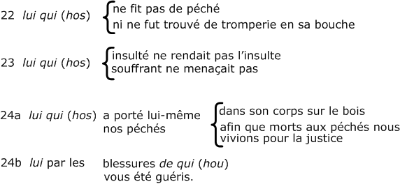 Il semble que ce soit dabord le quatrième chant du Serviteur de Yahvé chez le prophète Isaïe (...homme méprisé et déconsidéré. Celui-là porte nos péchés et il souffre pour nous...; voir Is 53, 2-5) qui aide les premières communautés chrétiennes à trouver un sens à cette mort ignominieuse.